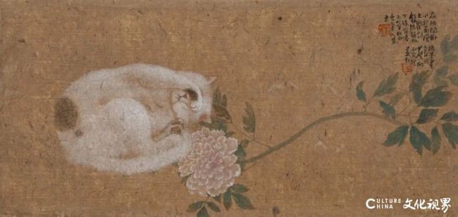 更动人的,是她把传统花鸟的“符号重负”,换成了当代人的“日常轻逸”。古之花鸟多载“比德”之喻:孔雀喻富贵,牡丹示雍容,猫犬含闲趣;但在她的笔底,这些符号都被轻轻卸去——素孔雀的洁,不是“君子之清”的标榜,只是羽片里藏着的干净;牡丹的开,不是“争春炫美”的张扬,只是时光里安然的盛放;小兽的懒,不是“疏懒无为”的隐喻,只是烟火里片刻的松弛。她写的从不是“古意里的花鸟”,而是“当下人的闲情”:当奔忙成了生活的底色,这尺幅里的素羽与繁花,便成了人心的“小住处”——不必远遁山林,只看这羽的软、花的柔,便能触到自然的温柔,捡拾起日常里被忽略的轻暖。