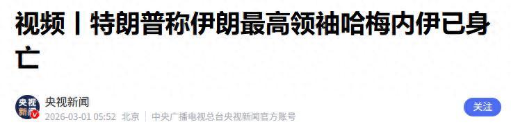 北京时间3月1日上午,新华社援引伊朗权威媒体的报道,“官宣”伊朗最高领袖哈梅内伊遇害。