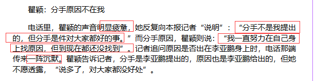她当时说,分手是李亚鹏提出来的,她一直努力找自身原因,但没找到。