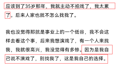 她在很火的时候主动不拍戏了,因为太累了,后来别人也不怎么找她拍戏了。