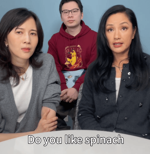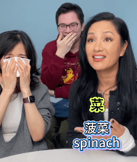 她说有一次自己去泰国菜市场买菜,当地人说英语有口音,见到她来就问:“Do you like spinach?”(你想要菠菜吗?)