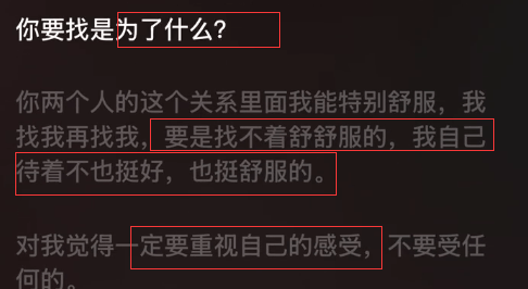 她说,人要明确恋爱结婚是为了什么,哪怕之后找不到能让自己状态特别舒服的人,自己待着也挺好,人,一定要重视自己的感受。