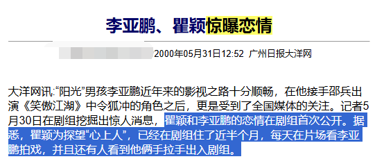 然而2001年底,李亚鹏和同剧组的周迅传出绯闻,瞿颖李亚鹏也很快官宣分手。