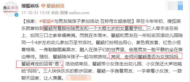 与张亚东分手后,瞿颖又有了一段新感情。2017年,有摄影师拍到瞿颖和男友带着一个小女孩去看学校,瞿颖还和老师说自己是小女孩的妈妈。