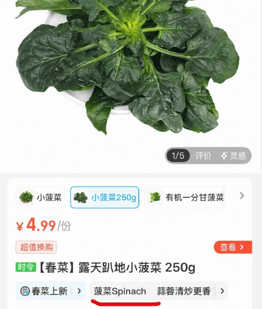 这段配上瞿颖的声情并茂,真的笑晕了!而菠菜梗出圈后,就连盒马都跟风在菠菜后面标注英语。