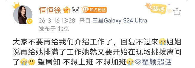 最近瞿颖姐姐又火咯,火到经纪人直接发微博说散户配资股票,不要再给她介绍工作啦,工作太多加班的话,姐会破防的