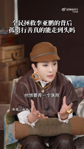 1月23日,@向太Tiffany陳嵐 发视频谈李亚鹏的慈善事业。向太表示,刚开始我捐了几百万,王菲默默支持了几千万,也是不够的。慈善靠个人的力量是做不到的,需要一个大企业的支持,这是一个漫长的过程需要持续运作,不是每一次都能靠全民募捐。向太称李亚鹏有大爱,但过于偏执,感觉他把自己逼到绝境了,建议李亚鹏只做嫣然医院的监事或者顾问,尽力而为就好,不要为难自己。